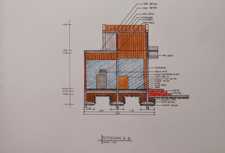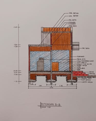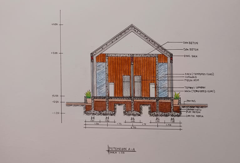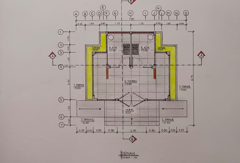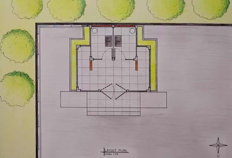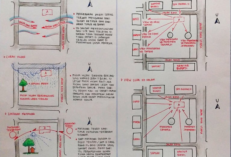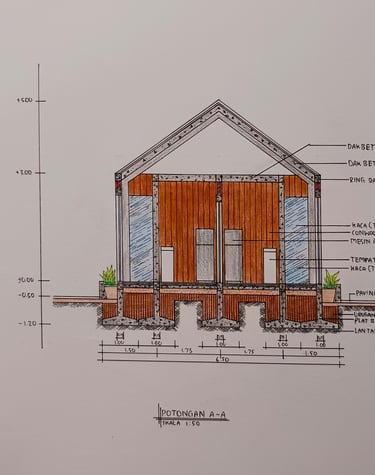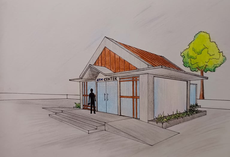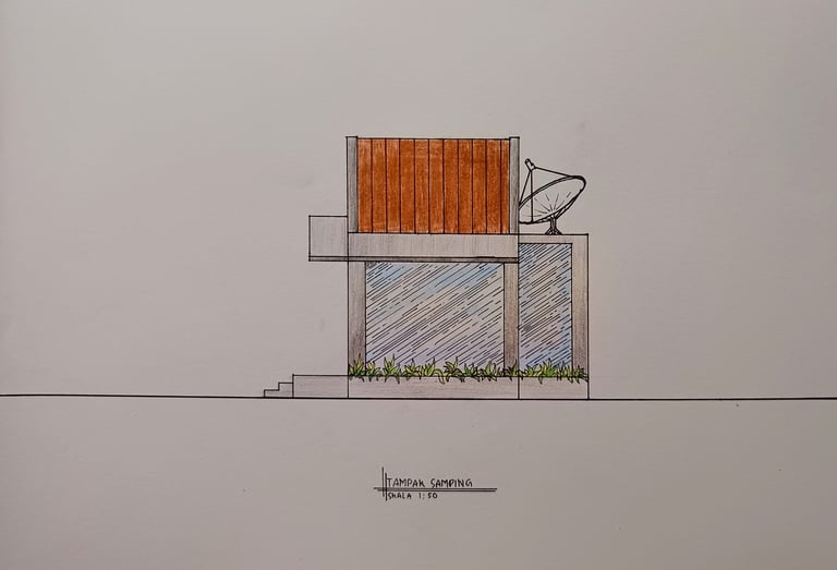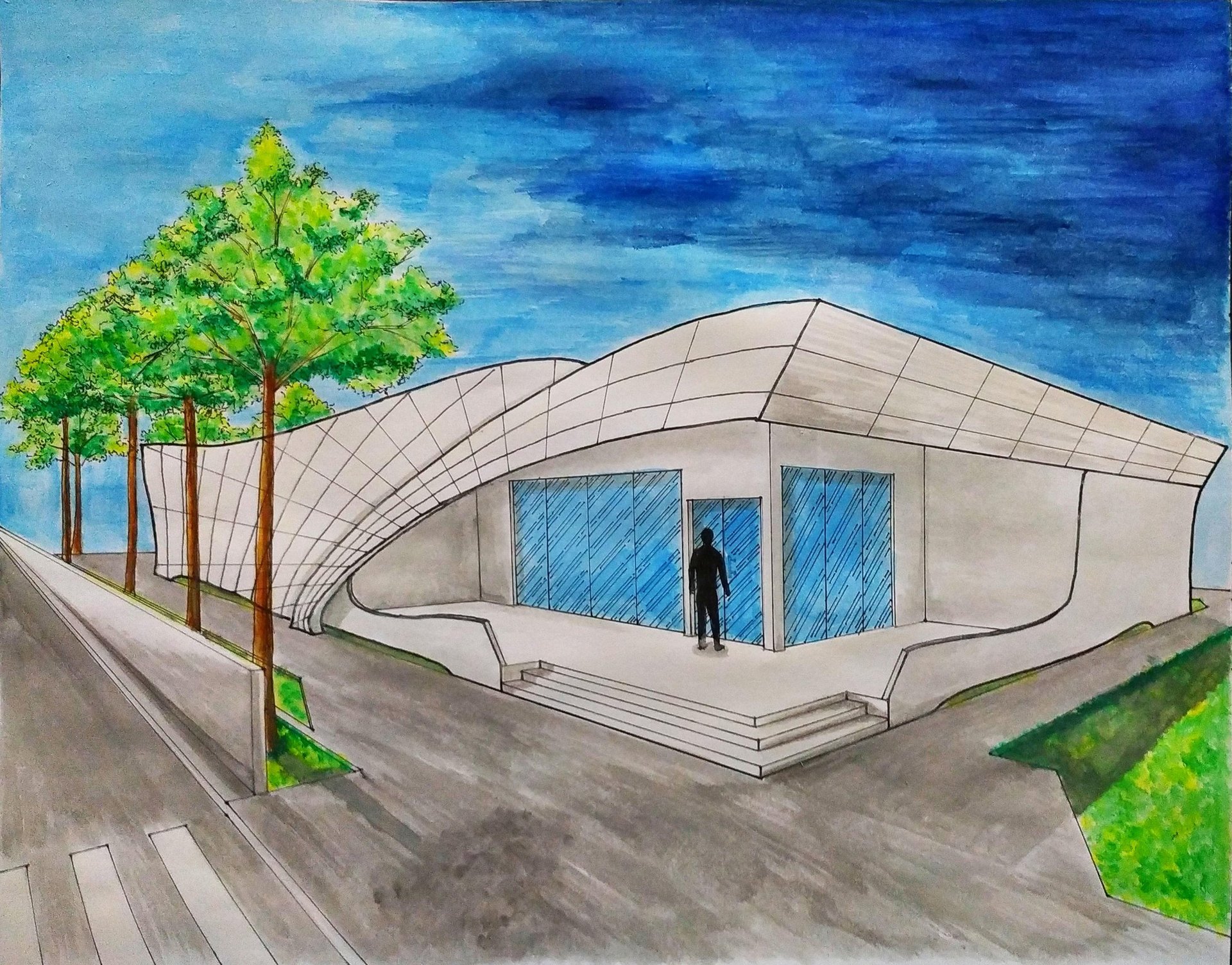 Gambar perspektif arsitektur sebenarnya ada cara/rumus dalam menentukan jumlah dan posisi penempatan titik hilang supaya hasil gambar proporsinya pas dan gambar tidak distorsi.